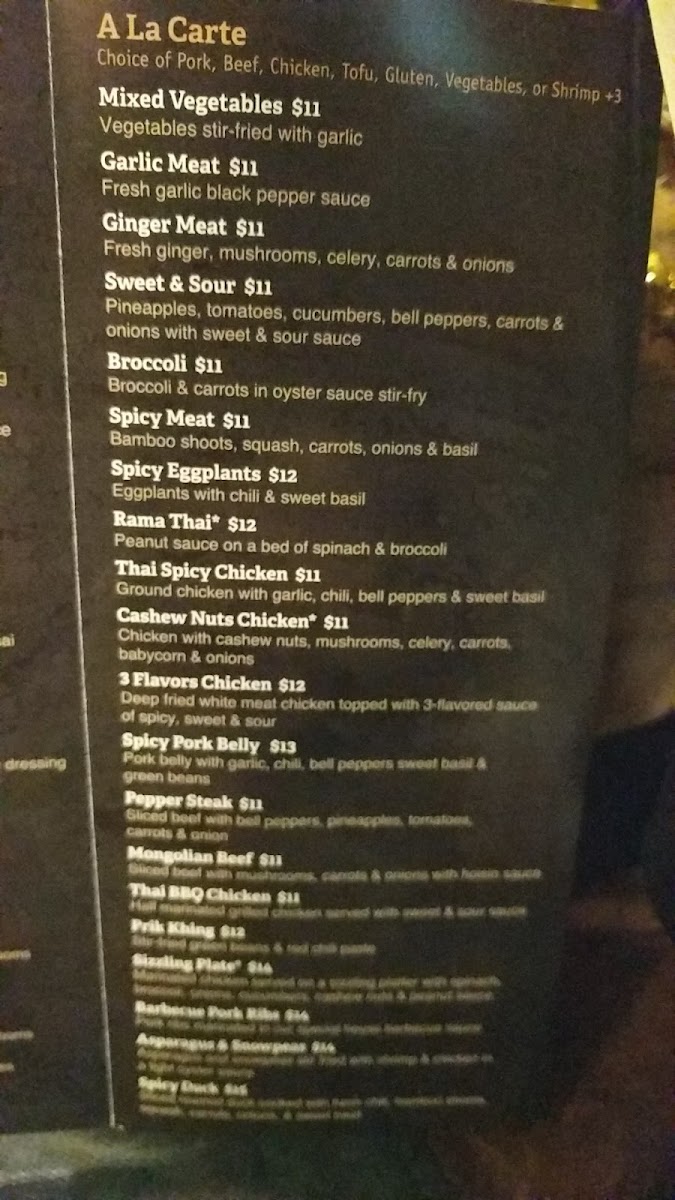 Your choice of chicken, pork, beef, gluten or tofu stir-fried with mint leaves, bell peppers and chili. No added MSG